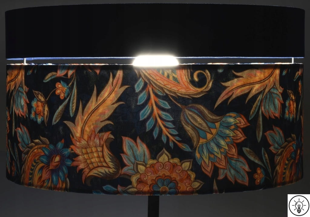 - Granatowy abażur z orientalnym motywem kwiatowym